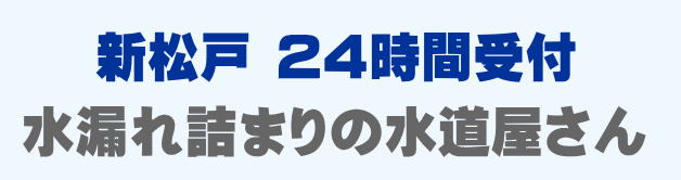 新松戸で早くて安い水道修理業者をお探しの方は当店までお問い合わせください。蛇口の水漏れ、トイレつまり、排水口の溢れ、パイプ修理など、新松戸での水道トラブルは最短15分到着です。新松戸は24時間受付。新松戸エリアは見積もり無料、出張費0円でスタッフがかけつけます。新松戸にお住まいの方で水廻りのお困りごとはご相談ください。